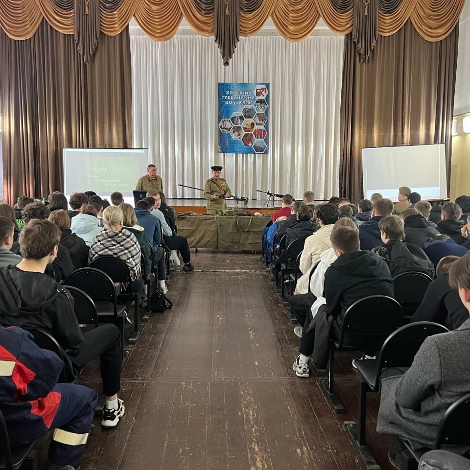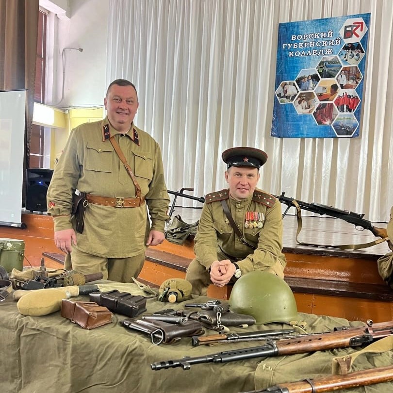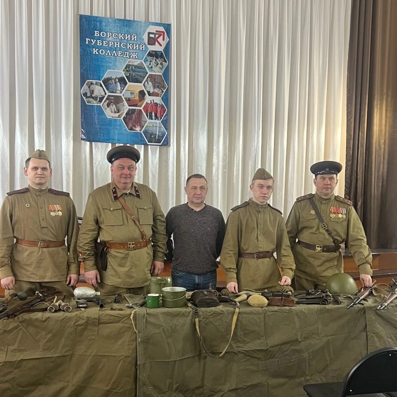 Участники военно-исторического клуба Левый берег посетили Борский губернский колледж с передвижной выставкой