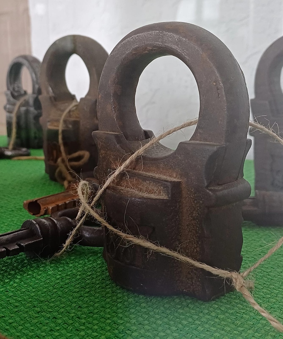 В этот же день подарили в наши музеи два весовых равноплечных коромысла. Да, и практически сотню подков начиная для тяжиков и заканчивая скакунов.